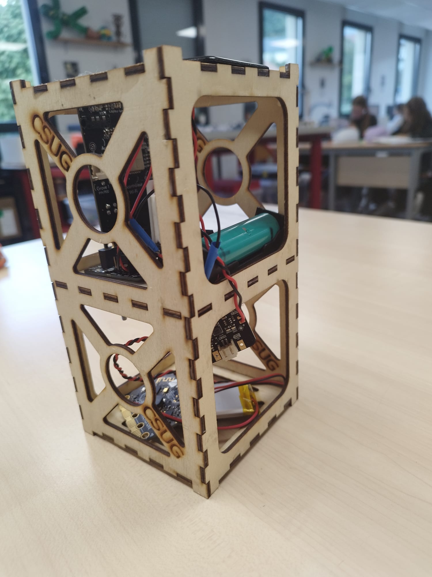 Intervention d'Estelle Moraux Astrophysicienne et directrice du Centre Spatial Universitaire Grenoblois et Fréderic Martin Ingénieur à destination des élèves de 3e du collège ayant en cours de Technologie réalisés la conception d'un nano satellite.